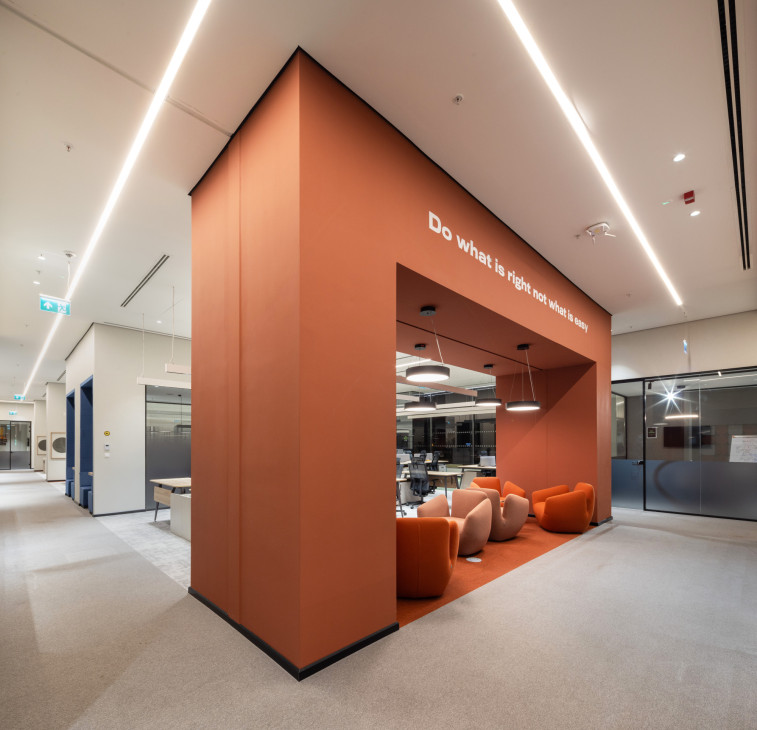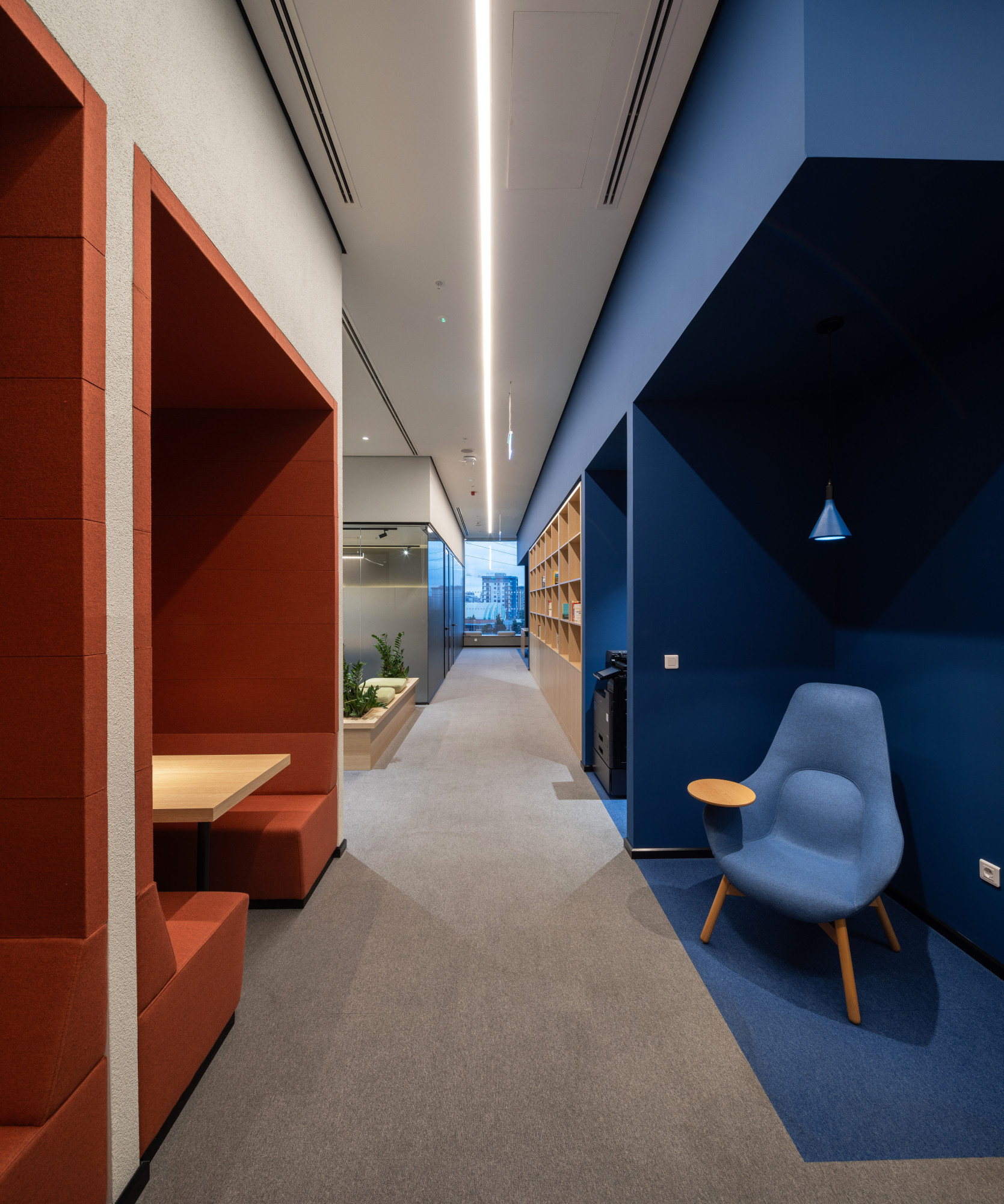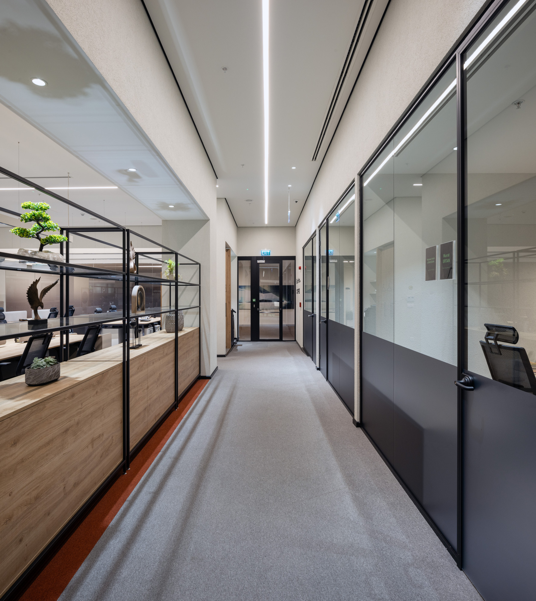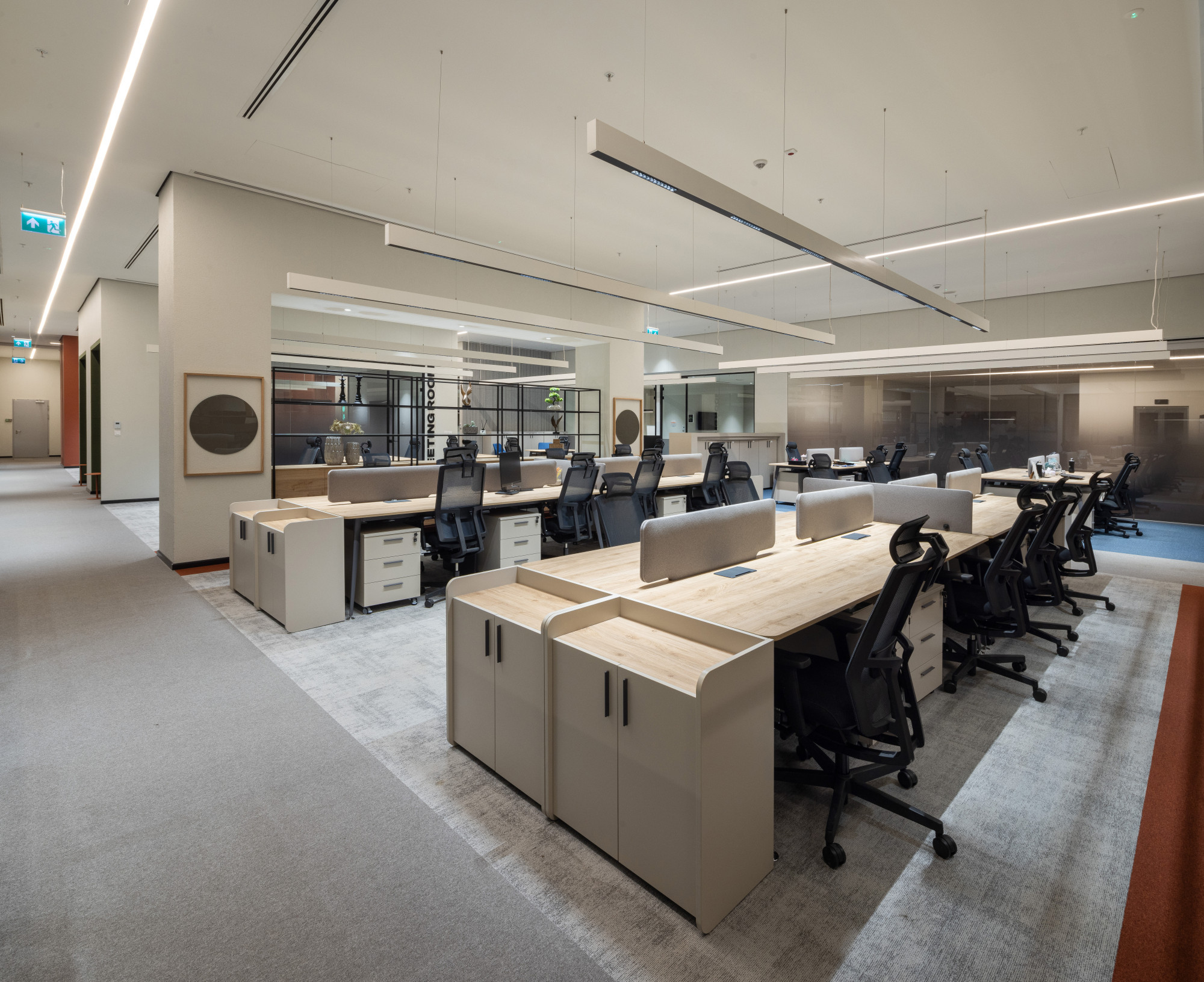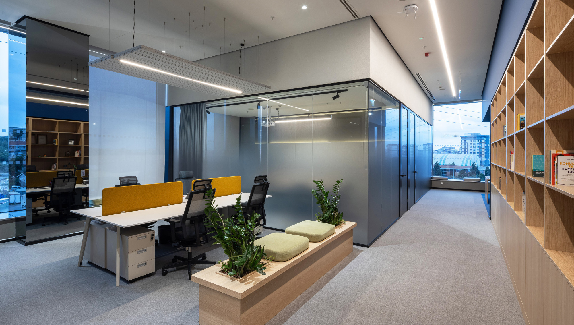 2.000 m²’lik alanda açık ofisler, yönetici ofisleri, toplantı odaları ve sosyal alanlardan oluşan projenin tasarımı kullanıcı ihtiyaç ve beklentileri doğrultusunda gerçekleştirilmiştir. Mekan, mevcut yapının getirdiği koşulları da dikkate alarak modern tasarım ilkeleri doğrultusunda estetik ve fonksiyonelliği bir araya getiren, kullanıcı deneyimini ön planda tutan akıllı çözümler ve ergonomik düzenlemelerle şekillendirilmiştir.