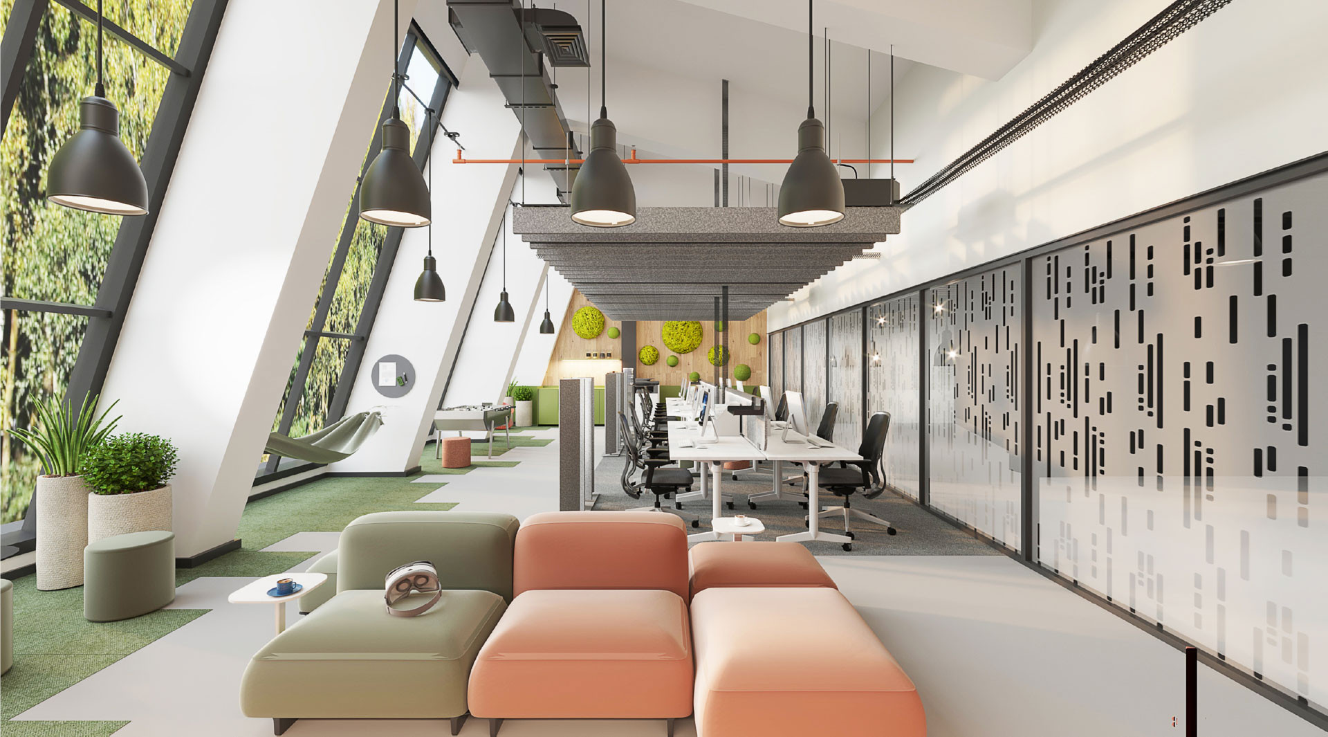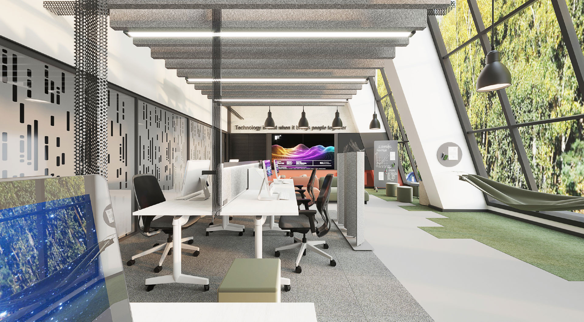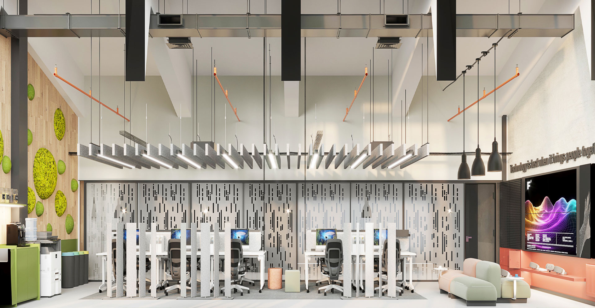 Proje kapsamında, esnek çalışma istasyonları, akıllı aydınlatma çözümleri ve ergonomik mobilyalarla donatılmış açık ofis alanları, işbirliğini teşvik ederken; dinlenme ve etkileşim alanları, sosyal aktiviteler için yaratıcı alanlar sunmaktadır.